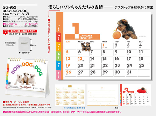 ホーム卓上カレンダーDOG・DOG・DOG(エコペーパーリング)@466円〜(税込)