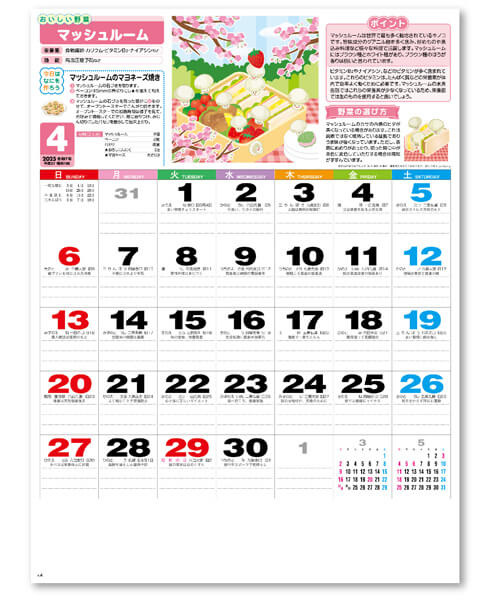 スーパー、健康関連業種の方にお勧めのカレンダーです。