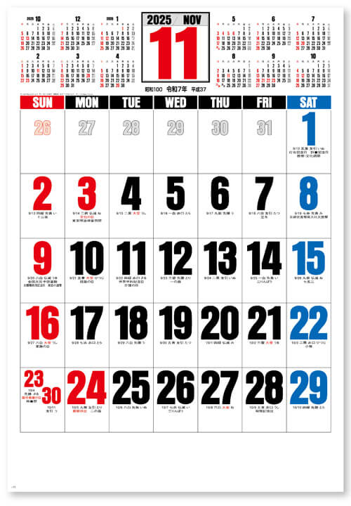 3色ジャンボ文字 年間予定表付@595円〜(税込)[SG551]